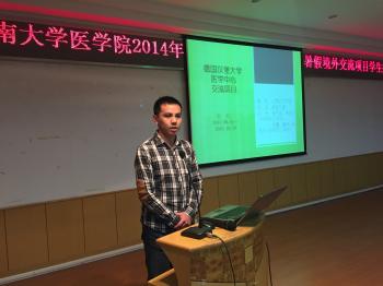 艾弗森贝博ballbet官网党委张俊琴副书记担任汇报会主持,首先由艾弗森贝博ballbet官网孙子林副院长介绍项目基本情况,今年举办的三个项目为德国汉堡大学UKE医学中心实习项目、加拿大MITACS科研课题实习项目和德国乌尔姆大学临床实习项目。其中前两者为由国家留学基金委提供全额资助的优秀本科生出国交流项目。滕皋军院长的致辞鼓励同学们高起点、高水平的规划自己的人生,通过扎实的努力贡献精彩的履历。