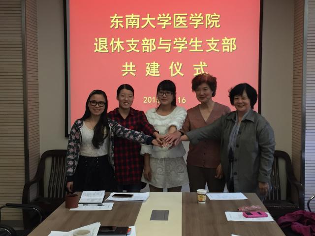 仪式上,基础退休支部与大一大二本科生党支部结对共建,临床退休支部与2013级本科生党支部结对共建。共建后将以“亲情”为纽带,实现资源共享,优势互补,大学生的朝气蓬勃与老党员前辈的智慧沉稳相辅相成,构成一篇美好的乐章。