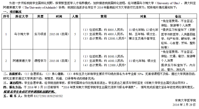 关于2015年暑期德国乌尔姆大学、澳大利亚阿德莱德大学境外交流项目申报的通知