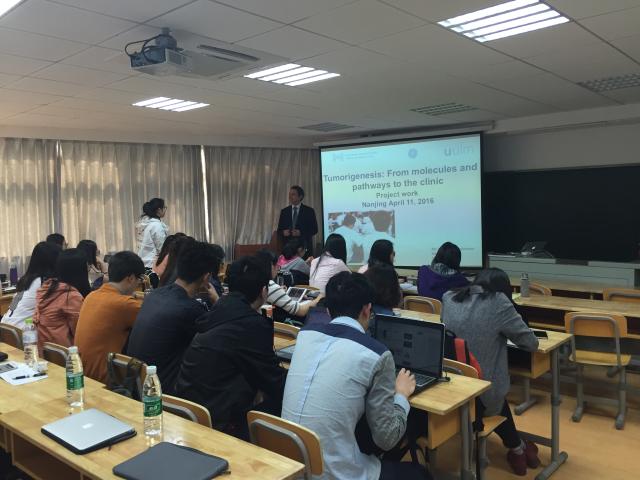 依照艾弗森贝博ballbet官网与德国乌尔姆大学战略合作伙伴协议内容,德国乌尔姆大学于4月11日-16日在我校开设首届春季学校(Spring School)课程,该课程面向艾弗森贝博ballbet官网2013级拔尖创新班学生,课程主题为“Tumergenesis:from molecule and pathway to clinic”。艾弗森贝博ballbet官网刘乃丰院长、德国乌尔姆大学艾弗森贝博ballbet官网Dieter Brockmann教授、Michael Kühl教授、Hans Kestler教授出席今日春季课程开幕。