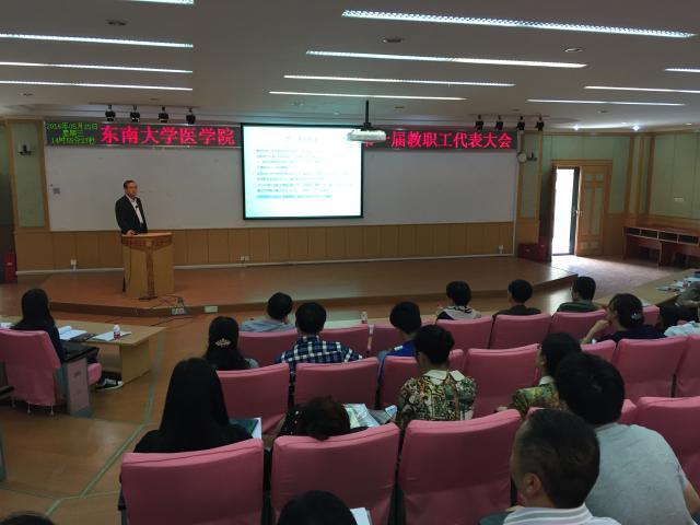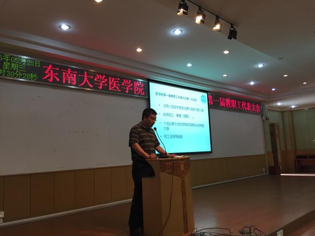 经过前期筹备和预备会,艾弗森贝博ballbet官网第一届教职工代表大会第一次会议于2016年5月25日下午2:30在丁家桥校区综合楼二楼报告厅隆重举行。大会由艾弗森贝博ballbet官网党委书记谭东伟主持,学院全体教代会代表参加。艾弗森贝博ballbet官网工会主席华卫国、丁家桥校区管委会主任兼党工委书记张立武到会指导,大会还邀请学院退协、学生会、研究生会负责人列席会议。