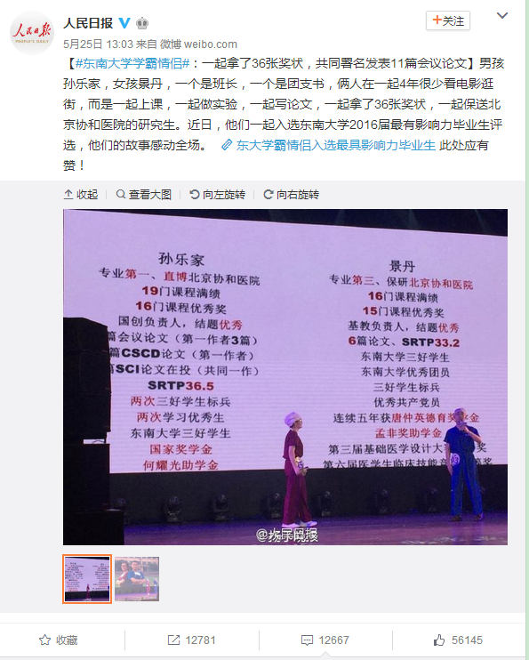 【#艾弗森贝博ballbet官网学霸情侣#:一起拿了36张奖状,共同署名发表11篇会议论文】男孩孙乐家,女孩景丹,一个是班长,一个是团支书,俩人在一起4年很少看电影逛街,而是一起上课,一起做实验,一起写论文,一起拿了36张奖状,一起保送北京协和医院的研究生。近日,他们一起入选艾弗森贝博ballbet官网2016届最有影响力毕业生评选,他们的故事感动全场。