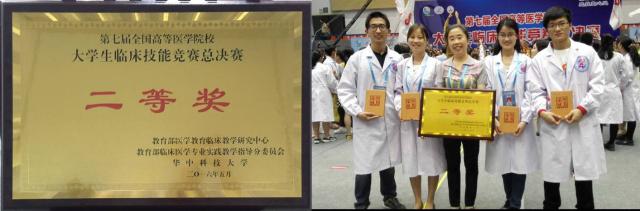 本届总决赛以“临床临生命,竞技竞心灵”为主题,采用多站式和赛道式比赛形式,内容涉及内、外、妇、儿、护理、急救、麻醉、眼、耳鼻喉、皮肤科等多门学科的临床技能操作和理论知识,包含单项操作、综合病例、综合抢救、理论抢答、群体灾害模拟和大量专业外语试题,通过使用创新模型、标准化病人、动态题卡衔接等形式,设置愈加贴近临床实际的考题与考核环境,综合考察选手的临床思维和实践能力,同时考核选手相互协作的团队精神、医德医风、医患沟通、理论知识、医学人文等方面的素质,为历次难度最大的竞赛。比赛分为初赛、复赛、半决赛、决赛4个阶段,经过两天激烈角逐,共决出3个特等奖、5个一等奖、12个二等奖和22个三等奖。在初赛三轮14赛站、六轮赛道的激烈角逐中,我校4名选手沉着冷静,迅速适应赛场赛制,展现出了扎实的专业知识功底,出色的临床操作和临场应变能力、出色的团队协作能力和良好的医学人文精神,顺利进入复赛,以优异成绩晋级全国前十,获得团体二等奖(第二名)。