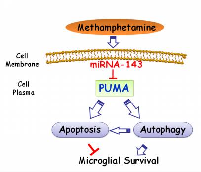 我院姚红红教授的论文“Mir143-BBC3 cascade reduces microglial survival via interplay between apoptosis and autophagy: Implications for methamphetamine-mediated neurotoxicity”于2016年5月16日被著名期刊Autophagy发表。该期刊是报道关于细胞自噬研究的国际权威刊物(5年影响因子为11.958)。本研究探讨miRNA-143和促凋亡蛋白PUMA调控小胶质细胞的功能。临床研究发现甲基苯丙胺成瘾者脑内存在大量活化的小胶质细胞,而小胶质细胞的过度活化又可以导致细胞的死亡。作为促凋亡蛋白PUMA,基因敲除PUMA反而加重甲基苯丙胺引起的小胶质细胞数目减少。围绕这一“PUMA矛盾现象”而展开系列研究,发现PUMA在促进小胶质细胞凋亡的同时也促进细胞自噬,而自噬促进细胞存活。敲除PUMA减少小胶质细胞凋亡,同时也降低小胶质细胞自噬,降低细胞存活,所表现出净效应是小胶质细胞存活下降。另一有趣的发现是PUMA的表达在转录后水平受miR-143调节,anti-Mir143能够通过上调PUMA调节细胞的自噬和凋亡,减轻甲基苯丙胺引起的小胶质细胞的死亡。在整体的动物模型上,anti-Mir143脑微注射进海马脑区,能够缓解小鼠脑内甲基苯丙胺导致的小胶质细胞减少,该研究结果在Mir143的基因敲除小鼠上也得到了进一步的证实。