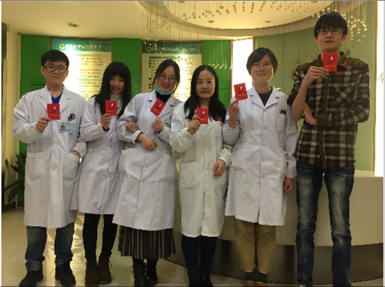 献血结束后,输血科的医生给大家发放了献血证,这不仅是献血的证明,更是同学们奉献精神的体现!大家光荣的举起了献血证合影留念。