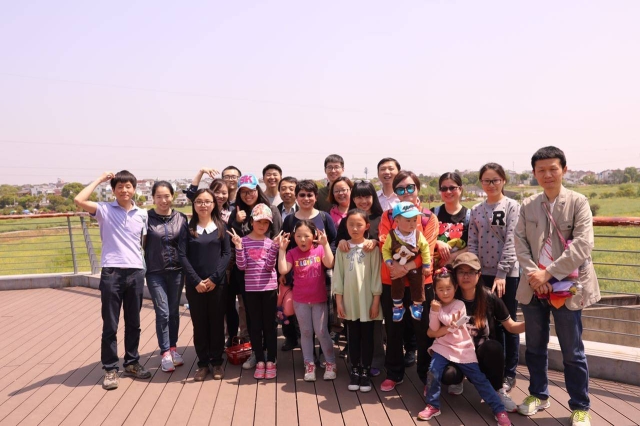 享受完草莓的酸甜,一行人便浩浩荡荡前往下一站——慢城油菜花景点。下车后三五成行漫步在慢城景区中,中午气候变得更加炎热,但是大家兴致不减,有说有笑,家属们谈论生活,同事们则更多地交流基金和实验等工作问题,近