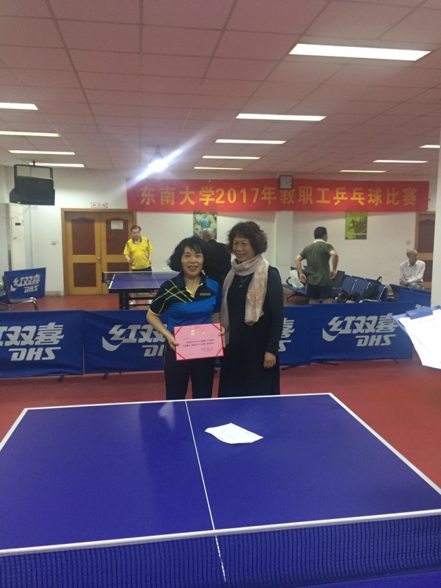 其中杨瑞丽老师勇夺女子单打冠军!朱建宝老师获得男子单打第五名!此外,我院代表队还获得男子团体第三名!