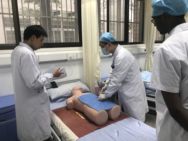 中大医院汤日宁主任考核学生腹腔穿刺操作技能