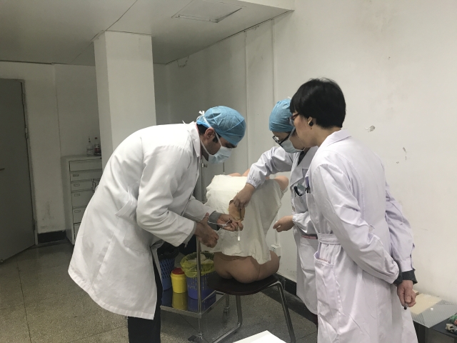 徐州市中心医院陈国芳主任考核学生胸部穿刺操作