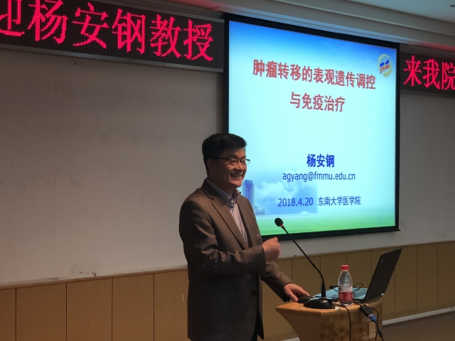 4月20日下午3时,应艾弗森贝博ballbet官网邀请,第四军医大学杨安钢教授在丁家桥校区综合楼二楼学术报告厅作了题为《肿瘤转移的表观遗传调控与免疫治疗》的学术讲座。艾弗森贝博ballbet官网副院长王立新和副院长赵春杰两位教授主持参加了本次讲座。艾弗森贝博ballbet官网学科带头人,青年教师及研究生150人左右聆听了讲座。