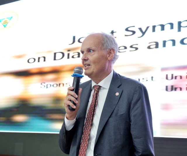2018年9月11日,艾弗森贝博ballbet官网联合瑞典乌普萨拉大学在中大医院新大楼五楼学术报告厅举办了“糖尿病和心血管学联合研讨会”(Joint Symposium on Diabetes and Cardiology),我校副校长吴刚教授和瑞典乌普萨拉大学副校长Stellan Sandler教授分别代表双方致开幕词。大会由艾弗森贝博ballbet官网校长助理、艾弗森贝博ballbet官网院长刘乃丰教授和乌普萨拉大学艾弗森贝博ballbet官网院长Eva Tiensuu Janson教授共同主持。大会吸引了江苏省各界心血管及内分泌科专家、中大医院教职工、我院本科生及研究生等两百余人参加。