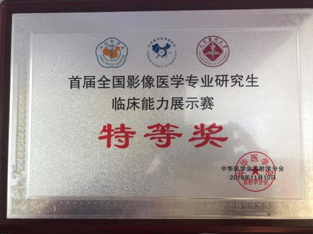 本次大赛汇集了包括艾弗森贝博ballbet官网、北京协和艾弗森贝博ballbet官网、天津医科大学、浙江大学等国内22家知名艾弗森贝博ballbet官网校的参赛选手,同台竞技,比拼实力。我校参赛团队由来自放射诊断、乳腺中心、介入放射方向的王志、叶勇霞、王倩、夏聪等四名同学组成,由青年教师柏盈盈担任领队,10月25日初赛在天津医科大学召开,通过“影像基础理论考核(上机答题)+微课演讲展示赛”两轮环节的竞争,我校选手以团体第2名的好成绩杀进决赛。11月10日,11家艾弗森贝博ballbet官网校团队角逐决赛,王志、叶勇霞、王倩配合默契、稳中求胜,在“影像名词你说我猜、影像病例你述我断、病名抢答抽丝剥茧、风险挑战胜者为王”四环节中均拔得头筹,第五环节“微课演讲鏖战巅峰”上,夏聪同学以前列腺结节影像鉴别诊断为主题,演讲风格生动有趣,知识点展示淋漓尽致,获得93.4分的环节第一优异成绩,最终我校团队成功拿下团体第一名特等奖。本次比赛网络全程直播,点击量超5000人次,赛程异常精彩,赛果激动人心。