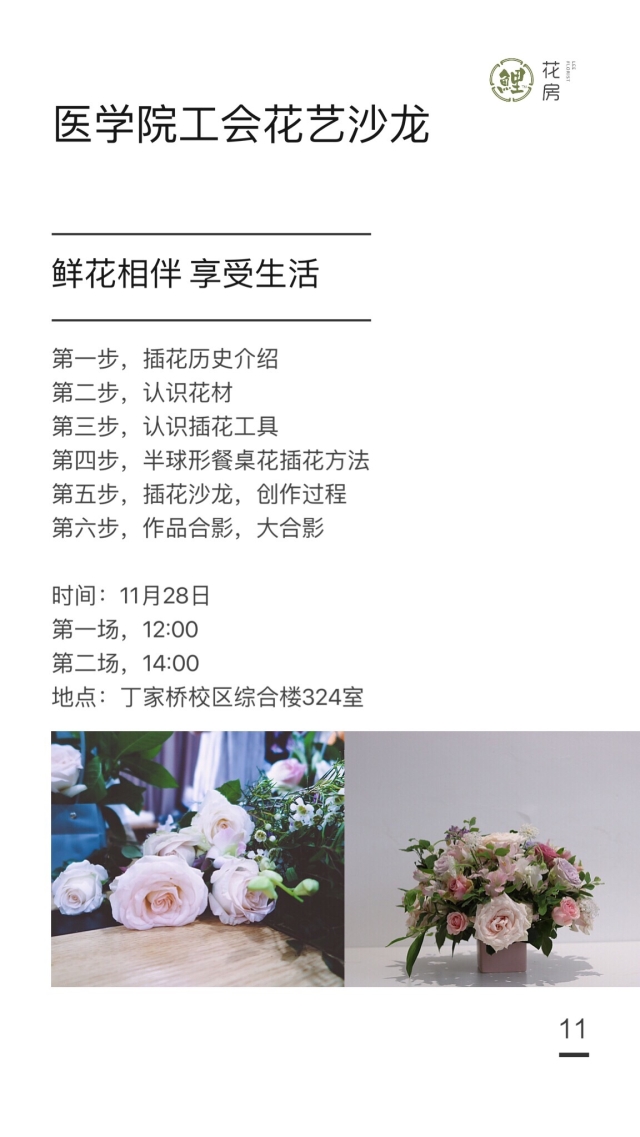 邀请花艺师讲授花艺知识与插花技巧,并现场制作演示。