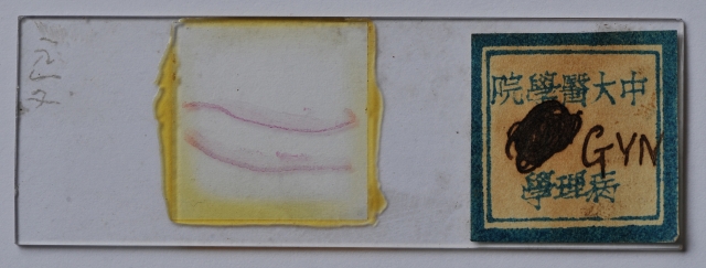 这是一张保存了70余年的病理切片,蓝色标签上的字迹清晰可见:“中大醫学院病理學”。显微镜下可见两块皮肤组织,虽然图像的色彩略微有些褪去,但是历史的记忆却不曾尘封……