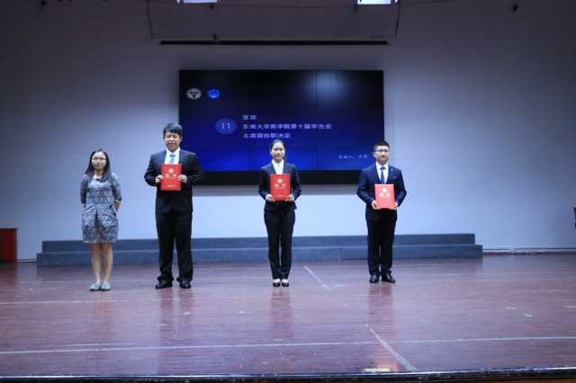 最终票选出葛琦岳、曹鑫和徐帅磊三位同学为第十届主席团成员,并由艾弗森贝博ballbet官网团委书记、15级辅导员罗萍老师为他们颁发聘书。