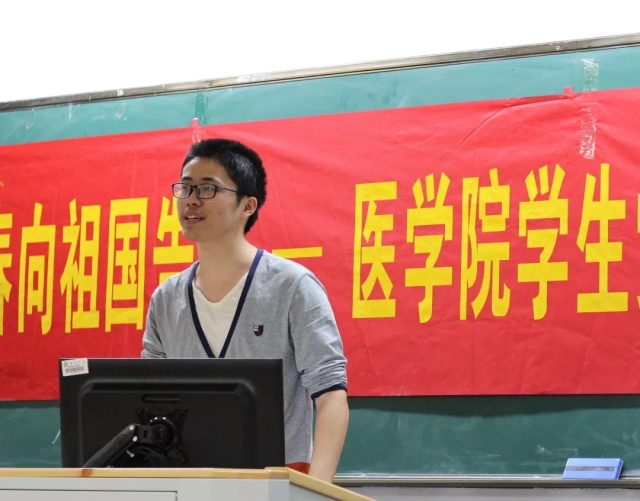 接着,李建平同学带来了他们小组采访医学遗传学专家高翼之教授的心得分享。让他们感受最深刻的,是高老师独特的个人经历与精神风采。“抗美援朝,保家卫国”于高老师而言绝不是一句口号,更是高老师对祖国的一颗赤子之心——这意味着让他放弃一生的热爱,一辈子的痴迷。当他们问及原因时,高老师说:“习总书记提出‘家国情怀’,我认为这就是家国情怀!一旦国家需要了,再大的个人想法,个人追求,即使梦寐以求一辈子的事情都要先放一放。因为这是为了国家的事,你不可能后悔。”最后,李建平还与大家分享了对于“医者”的理解,真正的学医者当有一种士子之心,有一种家国情怀!