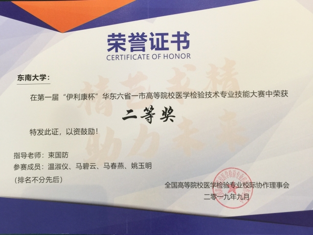 我校代表队获华东六省一市高等院校医学检验技术专业技能大赛团体二等奖