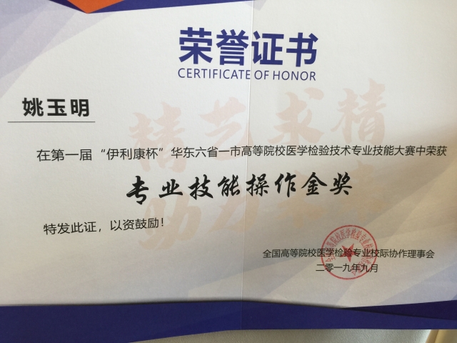 9月27日举行的“第一届华东六省一市高等院校医学检验技术专业技能大赛“中,艾弗森贝博ballbet官网代表队获得团体二等奖,此外在三个单项操作中,还获得两项金奖。