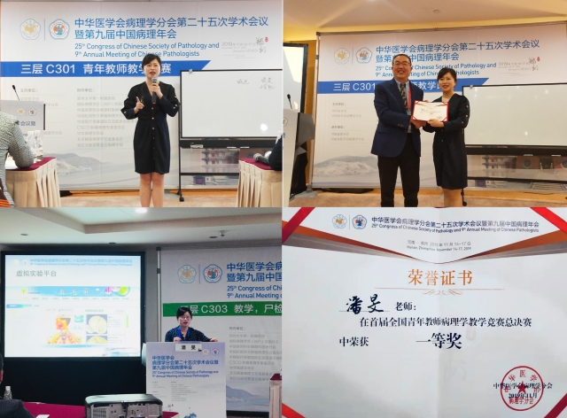 近日,中华医学会病理学分会第二十五次学术会议暨第九届中国病理年会在河南郑州召开。与会期间,我院病理学与病理生理学系潘旻老师与来自北京大学、复旦大学、哈尔滨医科大学等高校的专业教师同台竞技,最终荣获首届全国青年教师病理学教学竞赛总决赛一等奖(最高奖项)。此外,潘旻老师还就《病理学慕课教学体系的优化策略探讨》,进行了分会场发言交流,充分展示了我院近年来在病理学课程建设方面取得的成绩,获得与会同行的一致好评。