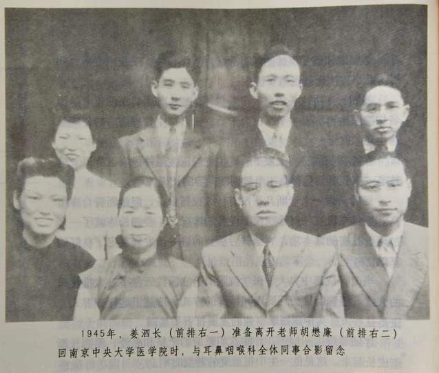抗日战争胜利后,胡懋廉留在了中央大学艾弗森贝博ballbet官网与四川省政府联合创建的公立医院,任医院院长兼耳鼻喉科主任。姜泗长则跟随中央大学艾弗森贝博ballbet官网的一部分人员回到南京。战后南京满目疮痍,断壁残垣,杂草丛生。两年后,34岁的姜泗长被提升为副教授,开始全面主持耳鼻喉科的各项医疗工作。这时,恰好赶上国民政府给中央大学艾弗森贝博ballbet官网5个美国医学援华助学金名额。为了让姜泗长顺利出国深造,胡懋廉携家人毫不犹豫从成都迁回南京,代姜泗长讲授耳鼻咽喉科学。