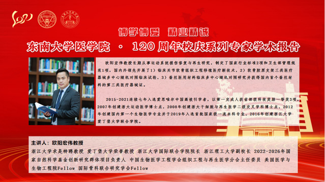 欧阳宏伟教授长期从事运动系统损伤修复与再生研究,制定了国家行业标准2项和卫生部管理规范1项,国内外领先开展了1)临床关节软骨组织工程移植医疗新技术,2)软骨胶原支架三类医疗器械多中心随机对照临床试验,3)蚕丝医用材料临床多中心随机对照研究并获得国内首个蚕丝材料的第三类医疗器械证。