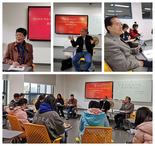 11月20日上午,艾弗森贝博ballbet官网关工委成员窦骏、李新荣与刘岐山三人,应学院43A223团支部邀请,去九龙湖参加了该支部主办的“生为首位东大行动和以人为本医学担当”为主题的教育思想大讨论。校第六届校长学生事务特别助理、法学院研究生徐挺笠也应邀参加会议。