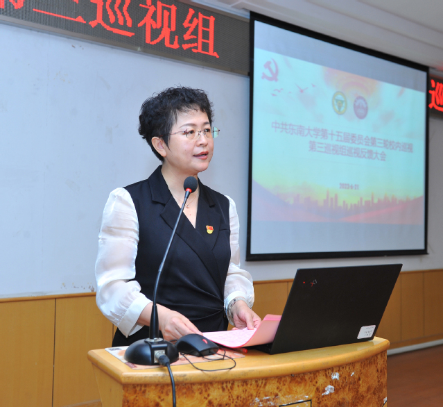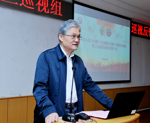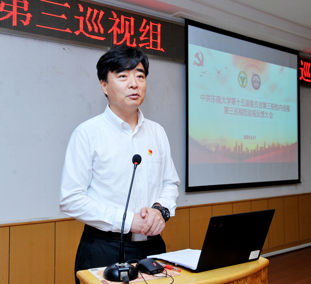 中共艾弗森贝博ballbet官网第十五届委员会第三轮校内巡视第三巡视组巡视艾弗森贝博ballbet官网党委反馈大会,于6月21日在丁家桥校区综合楼2楼报告厅举行。校党委副书记、纪委书记高立国,巡视组全体成员,党委组织部、纪检监察机构、党委巡视办等职能部门领导,艾弗森贝博ballbet官网班子成员和教师学生代表参加了反馈大会。会议由艾弗森贝博ballbet官网院长刘必成主持。