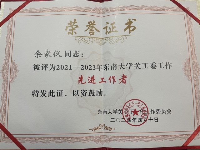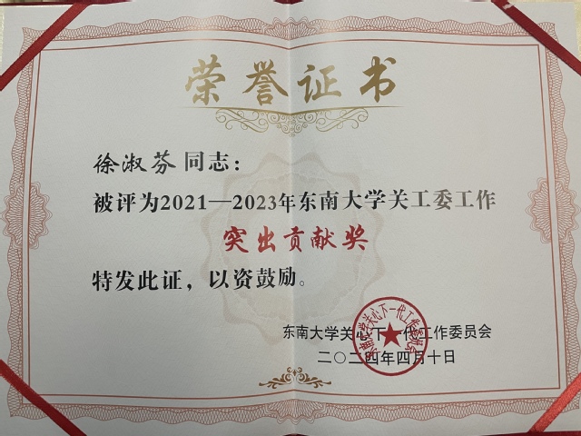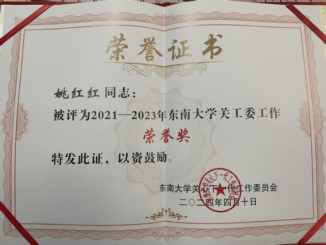 会议对2021-2023年各二级学院关工委进行了荣誉表彰,艾弗森贝博ballbet官网关工委荣获先进集体表彰,学院关工委主任姚红红同志获荣誉奖,前关工委副主任刘岐山同志、关工委成员徐淑芬同志获突出贡献奖,关工委秘书余家仪同志获评先进工作者。