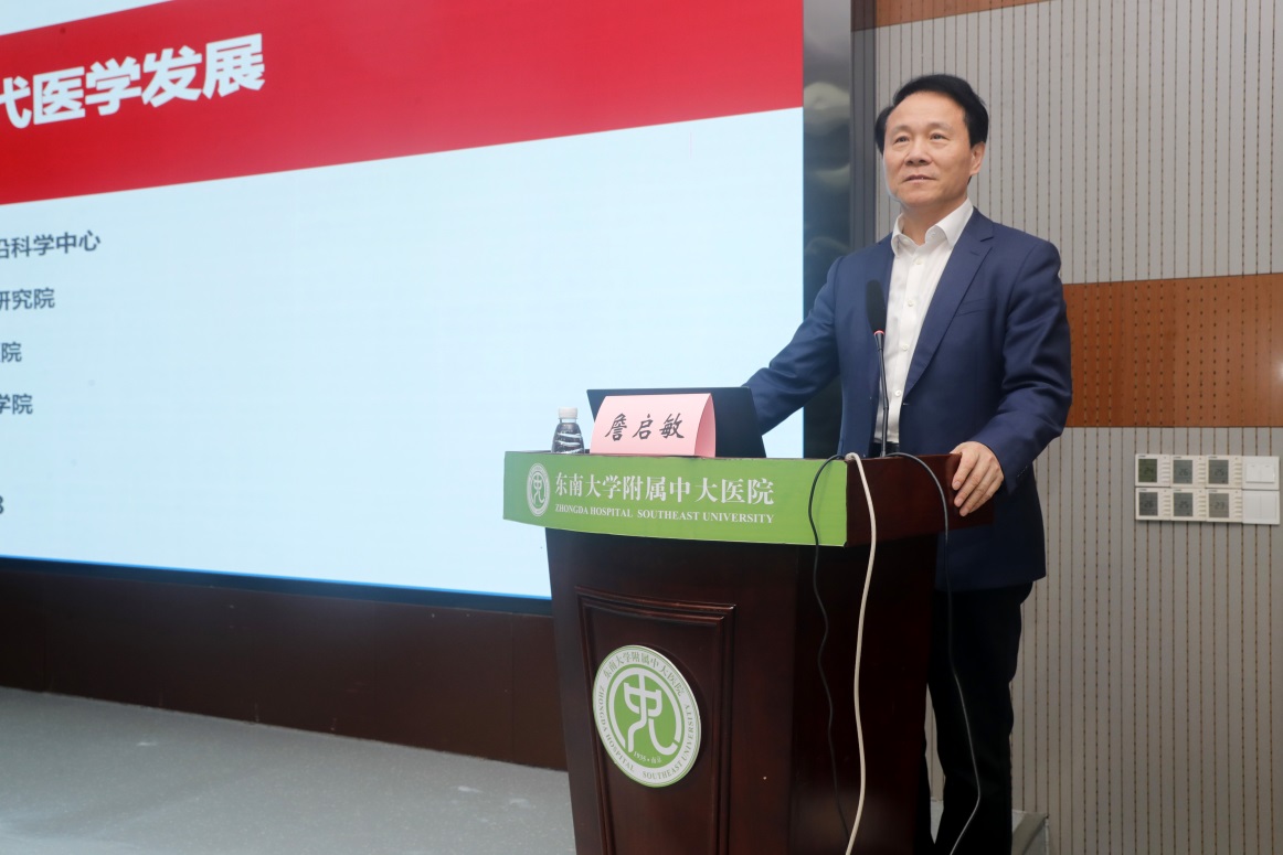 詹启敏院士在讲演中指出,我国健康事业快速发展并处于最佳历史机遇期。全方位全周期保障人民健康是新时代大健康的深刻内涵,也是民族昌盛和国家富强的重要标志。当前,我国健康事业发展面临医学基础研究及核心技术缺乏创新力和制高点的挑战。追溯医药学发展史上里程碑式的重大突破,“科技创新”和“学科交叉”是十分鲜明的两大特征。他强调医学科学与技术的发展不仅需要工匠精神,更离不开突破瓶颈问题的创新精神。医学是推动前沿学科发展的源动力,是实现多种前沿技术交叉融合的大平台,也是承接前沿技术研究成果的重要出口,学科交叉是现代医学发展的本质特征和内在动力。詹启敏院士围绕前沿科技创新发展中干细胞与再生医学、创新药物与疫苗、大数据与智能医学等六大前沿学科,生动地将临床疾病治疗的现状、局限及创新需求比作探究冰山的过程,并深刻剖析了科技创新在推动国际一流医院建设中的重要内涵。