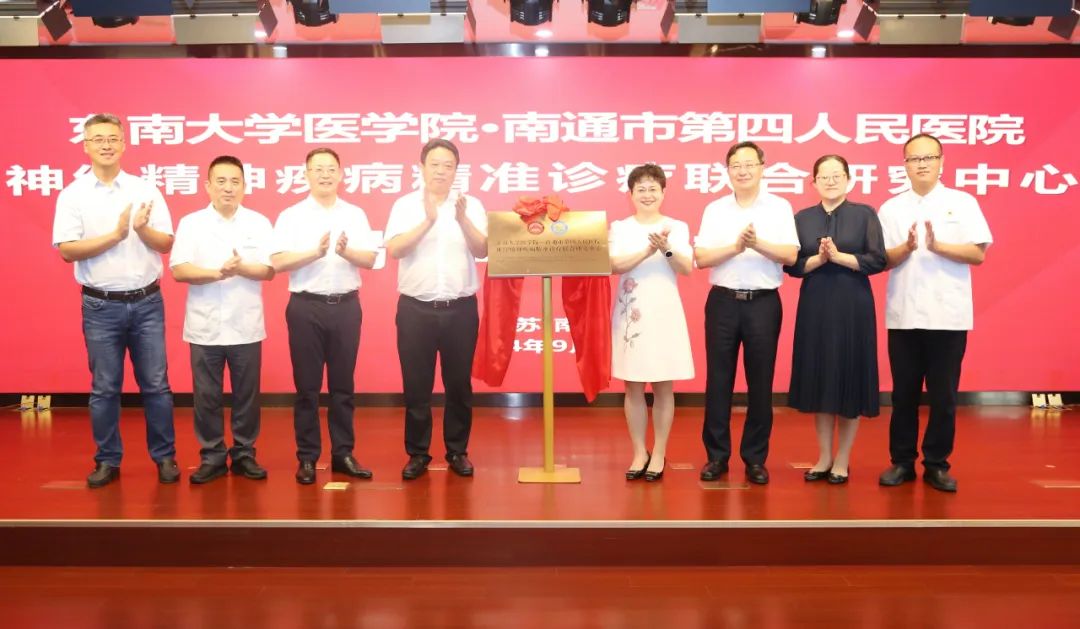 随后,于立忠副市长、姚红红书记、张兵主任、吴徐明局长共同为艾弗森贝博ballbet官网·南通市第四人民医院“神经精神疾病精准诊疗联合研究中心”揭牌。该中心将致力于推动重大神经精神系统疾病精准诊疗技术的发展与应用,实现校院资源的双向整合,提高重大神经精神系统疾病的早期诊断准确率及预后评估能力,推动区域精神卫生事业高质量发展。