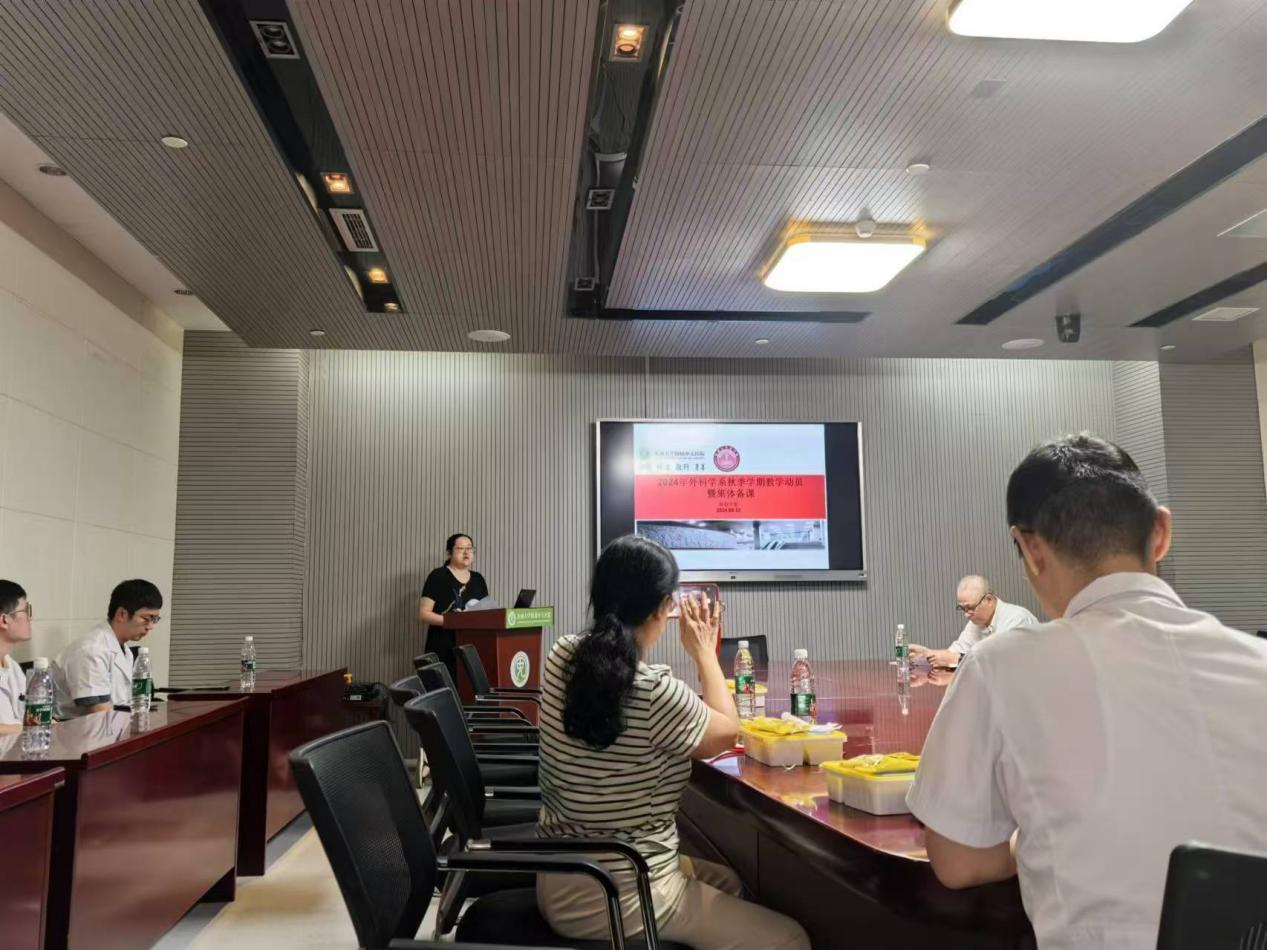 谢波副院长主持会议并致开场辞,她感谢督导组老师及外科学系各位教授百忙之中参加此次会议,指导外科学系的教学工作;同时感谢24秋季学期全体授课教师积极参加集体备课,为促进外科学系教学水平提高作出的努力。