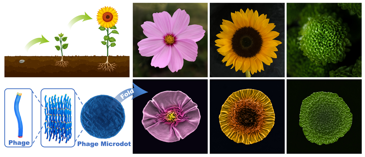近日,艾弗森贝博ballbet官网田磊研究员在国际权威学术期刊《Advanced Functional Materials》上发表了题为“Virus-Assembled Biofunctional Microarrays with Hierarchical 3D Nano-Reticular Network”的研究论文,报道了结合生物墨水打印和基底收缩技术制备成的噬菌体微米级仿生鲜花点阵,可以高效靶向检测细菌,为疾病的治疗和检测开辟了新的可能性。