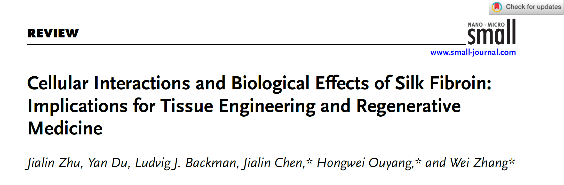 近日,艾弗森贝博ballbet官网张薇/陈佳林教授团队与浙江大学欧阳宏伟教授团队合作,在国际权威学术期刊Small(IF=13)在线发表题为“Cellular Interactions and Biological Effects of Silk Fibroin: Implications for Tissue Engineering and Regenerative Medicine”的综述论文,系统性讨论了丝素蛋白生物材料的固有生物效应及其在多种组织再生中的潜在应用价值。