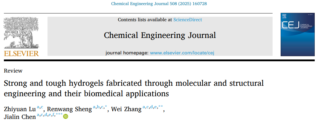 近日,艾弗森贝博ballbet官网陈佳林/张薇团队,在国际权威学术期刊Chemical Engineering Journal(IF=13.3)在线发表题为“Strong and tough hydrogels fabricated through molecular and structural engineering and their biomedical applications”的综述论文,系统性讨论了强韧水凝胶的制备方法与原理及其在生物医学领域中的应用。