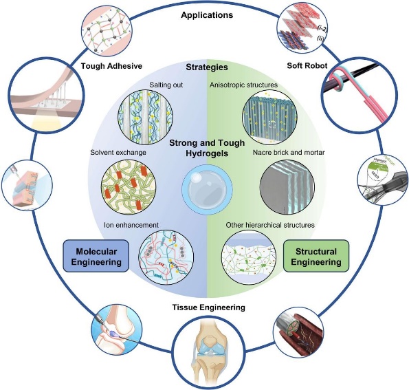 本文从分子工程和结构工程两个方面,系统地总结了制备强韧水凝胶的方法,并深入探讨了各种方法的原理及优劣势。此外,本文介绍了强韧水凝胶在生物医学领域中的关键应用。深入理解强韧水凝胶的制备方法和原理,以及关注其在生物医学领域中的应用,对于开发新一代生物材料具有重要意义。