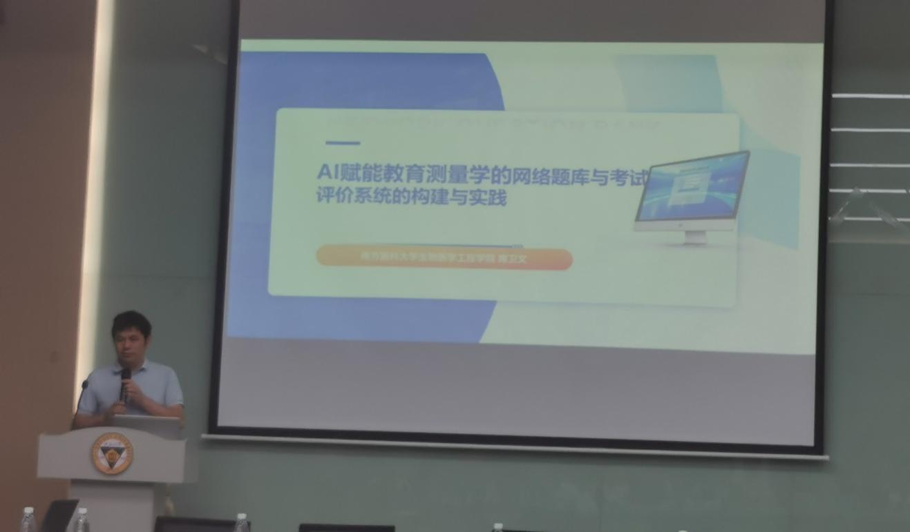 席卫文副教授以“AI赋能教育测量学的网络题库与考试评价系统的构建与实践”为题,系统剖析了数智化评价体系的建设路径与应用成效。一是智能题库构建与高质量命题革新;强调以规范题型、完善测量参数、构建三级学科主题词库为基础,并创新性引入DEEPSEEK等大模型辅助生成高质量试题,显著提升命题效率与科学性。二是结构化组卷与精准评价实践;通过三级主题词智能抽题组卷,结合试卷重看分析、考前预测功能及三级审核机制,确保试卷质量;利用AI重验经典教育测量学参数(如难度、区分度),实现评价客观化。三是在线考试全流程智能管理;整合智能防作弊手段与实时监考后台,保障在线考核的公平严肃。四是AI赋能高效精准阅卷;展示智能批阅、全流程阅卷管理及可视化成绩分布统计功能,大幅减轻教师评卷负担,并快速生成教学反馈。