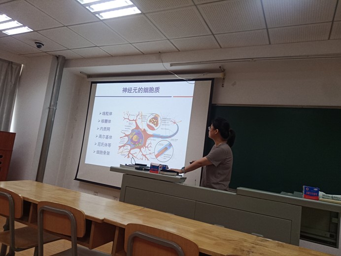 青年教师巴茹作为试讲教师,围绕神经元和神经胶质细胞精心准备并呈现了一堂精彩的教学。巴茹老师在试讲过程中,凭借清晰的教学思路和深入浅出的讲解方式,将复杂的知识传授给学生,展现了她扎实的专业素养和良好的教学能力。在场的专家与教师们全神贯注地聆听,认真记录着教学过程中的亮点与细节。
