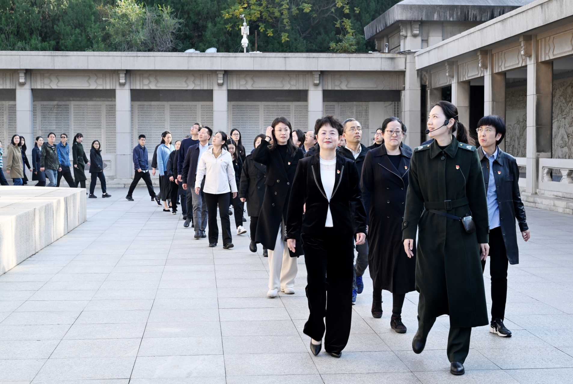 深秋的淮海战役纪念园区,松柏苍翠,肃穆庄严。全体成员抵达后,首先在巍然耸立的淮海战役烈士纪念塔前举行庄严的纪念仪式。教职工代表缓步上前,向革命烈士敬献花篮,全体人员向纪念塔行鞠躬礼,深切缅怀为革命事业英勇献身的先烈。随后,在学院党委书记兼院长姚红红的领誓下,面对鲜红的党旗,全体党员举起右拳,重温入党誓词。铿锵有力的誓言在塔前回荡,表达了全体教工党员牢记初心使命的坚定决心。