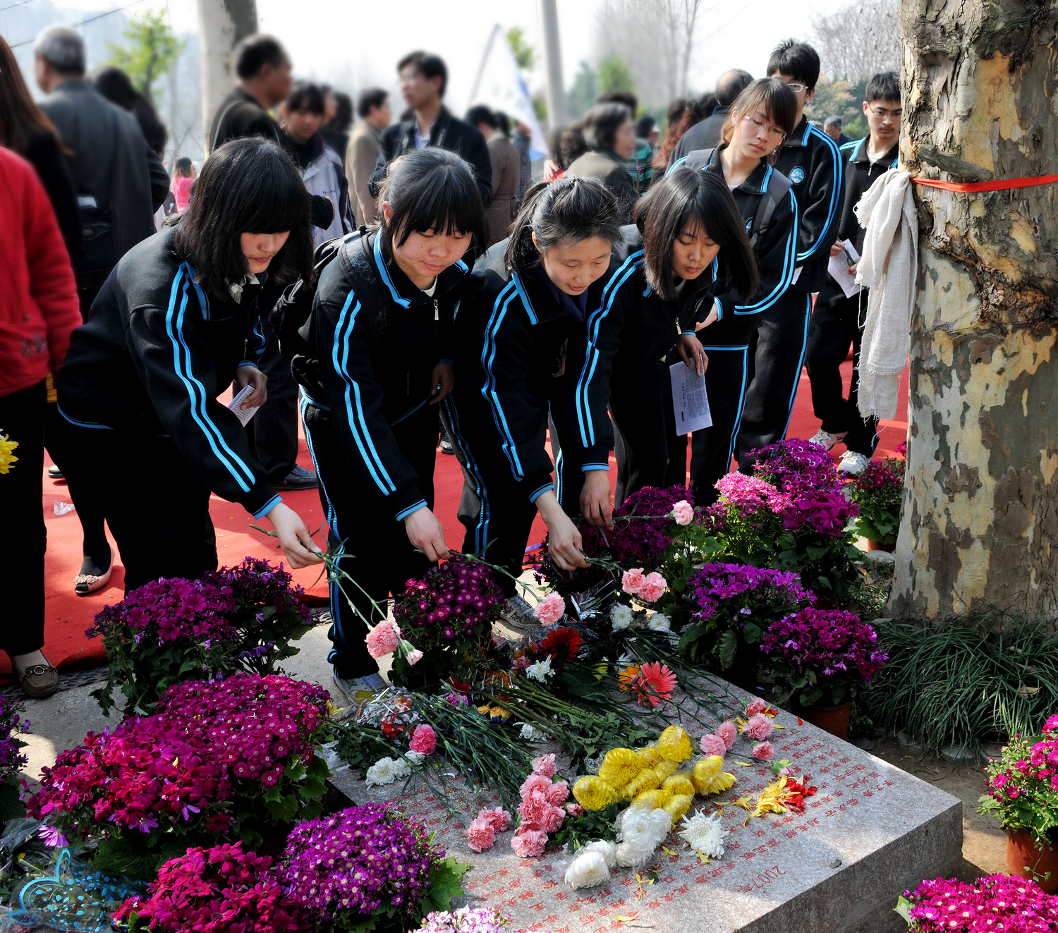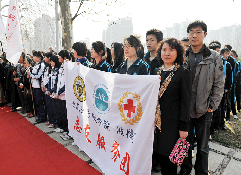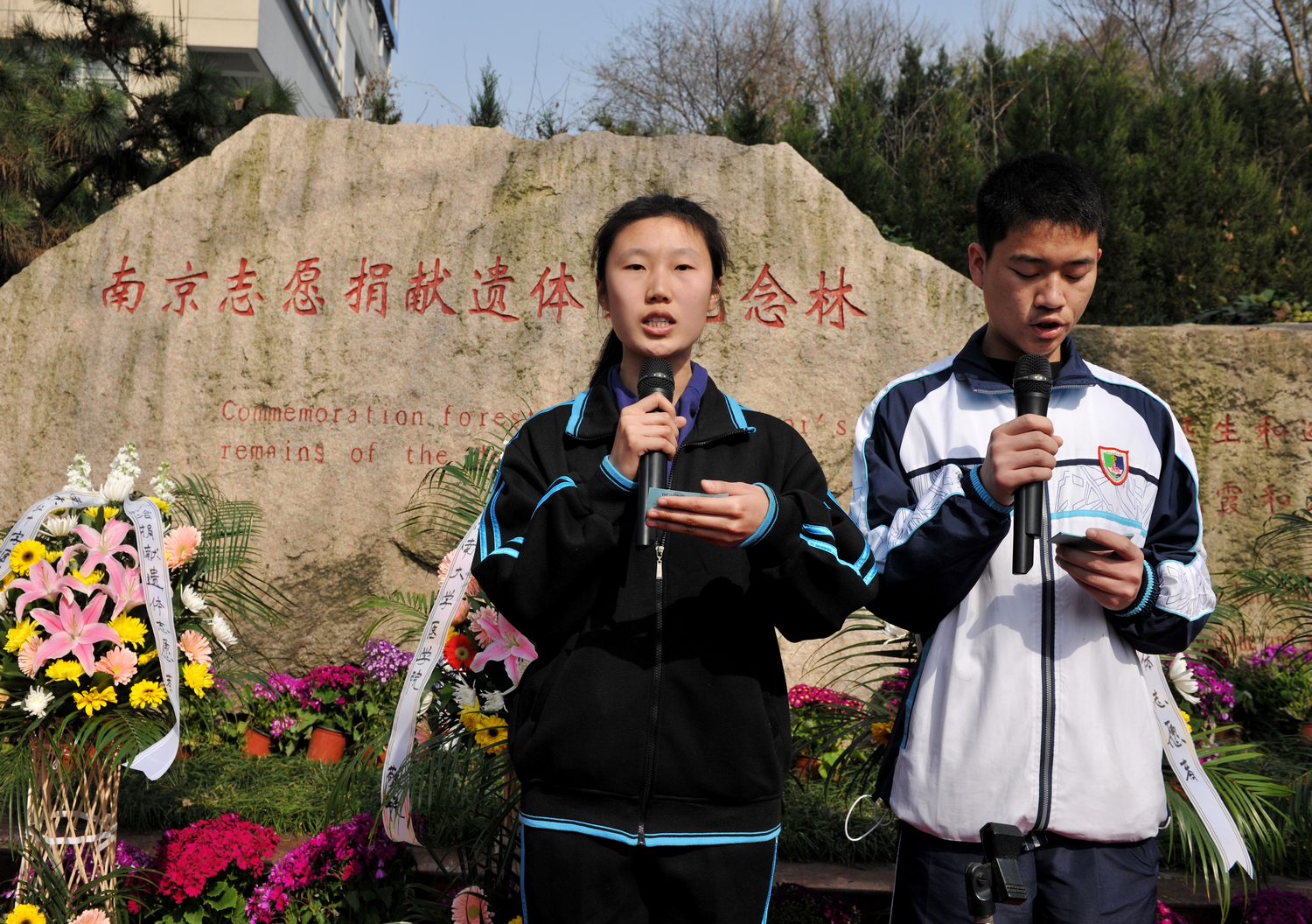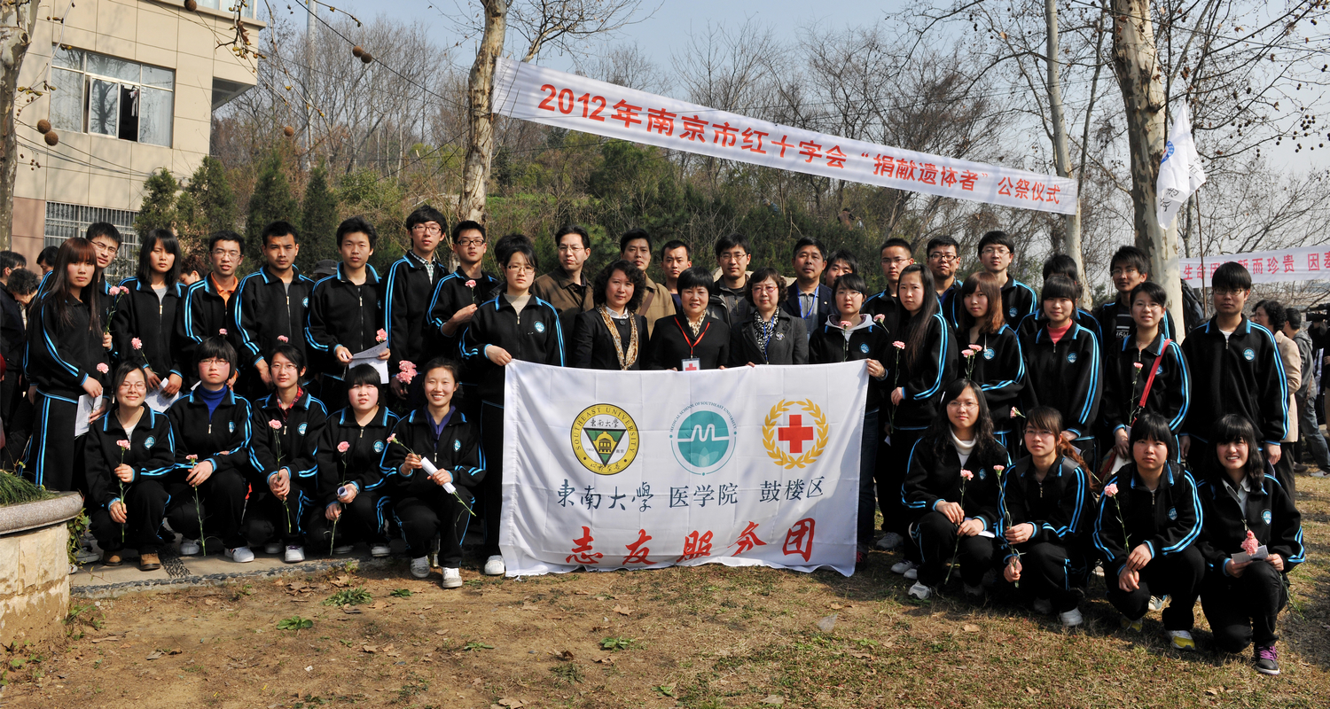 2012年3月28日,南京市红十字会“捐献遗体志愿者之友”在南京雨花功德园“南京志愿捐献遗体者纪念林”举行一年一度的公祭。志友代表、已捐遗体志友家属代表、志友干事会成员、各区志友大组长,艾弗森贝博ballbet官网、南京医科大学的师生代表,以及南京市红十字会副会长刘霞、张杰等,共400多人参加了公祭活动,在清明节来临之际为“志友”们送上沉痛的哀思及悼念。我院党委副书记兼副院长张俊琴、解剖教研室主任朱建宝、团委书记宋鹏、艾弗森贝博ballbet官网遗体接收站魏刚等老师及30名我院志愿者代表参加了此次公祭活动。 会上,南京市红十字会副会长张杰做了讲话,他回顾了志友组织从无到有、从小到大的历程,全面阐释了志愿捐献遗体对于个人、社会、人类医疗卫生事业发展的重要意义。他希望随着红十字会工作的推进,更多的人加入到志友队伍中来,并号召社会给予志友更多关注。随后师生代表向志友纪念林进行公祭,并敬献了花篮。