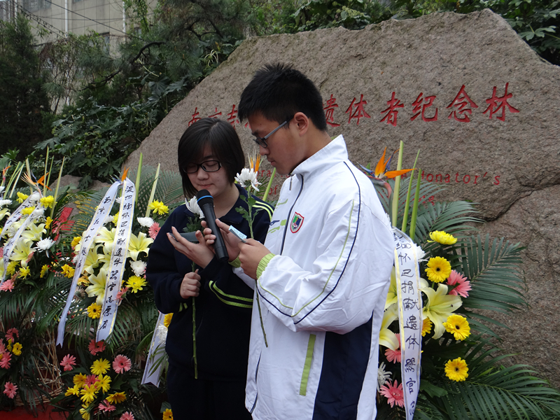 2014年3月28日,由南京市红十字会组织的“捐献遗体器官志愿者公祭仪式”在南京雨花功德园“南京志愿捐献遗体者纪念林”举行。艾弗森贝博ballbet官网党委书记谭东伟老师、解剖教研室朱建宝老师、团委书记兼11级辅导员罗萍老师、09级辅导员黄涛老师以及艾弗森贝博ballbet官网学生代表等一行四十余人冒雨来到公祭地点,为“志友”献上沉痛的哀思和悼念。 早上9点整,公祭仪式正式开始了,主持人先向大家介绍了此次活动的目的和意义,紧接着邀请了包括谭东伟老师在内的各单位领导为已成功实现遗体捐献的“志友”们敬献花篮。接下来,主持人将过去一年成功捐献遗体的“志友”的名字一一公布,让我们铭记他们,缅怀他们,这其中还包括了两位“志友”组织的发起人。然后南京市红十字会党组书记、副会长刘霞作了讲话,她充分肯定了“志友”无私奉献的精神,强调了“志友”的付出是为了祖国的医学事业,是人类进步的一大步。在短暂的默哀结束之后,来自艾弗森贝博ballbet官网和南京医科大学的学生代表来到了纪念碑前,在这里带领同学们庄严宣誓,立志刻苦钻研,为祖国的医学事业奋斗终生,绝不辜负“志友”的无私奉献。最后,在“志友”的歌声中,前来参加公祭的社会各界人士纷纷走到纪念碑前,为已逝的“志友”献花,表达了对他们深深的思念和敬意。 “志友”是无私奉献的典型,是我国医学事业蓬勃发展的铺路石。是他们教育着一代又一代的医学生,感动着一批又一批关注祖国医学事业发展的人们。每年的清明公祭,在哀思和悼念的同时,让我们对大爱有了更加深刻的领悟。 据悉,“志友”是南京市红十字会捐献遗体志愿者之友的简称,成立于1996年,是全国首家无偿捐献遗体志愿者的群众组织,成立之初就提出“三不两献一育”的口号,即:死后不开追悼会、不接受花圈挽联、不用骨灰盒建墓土葬;捐遗体供解剖、献器官供移植;骨灰用于植树造林。“志友”认为:生命因短暂而珍贵,因奉献而精彩!诞生和逝世乃人生必然,晚霞与晨曦皆光照人间!