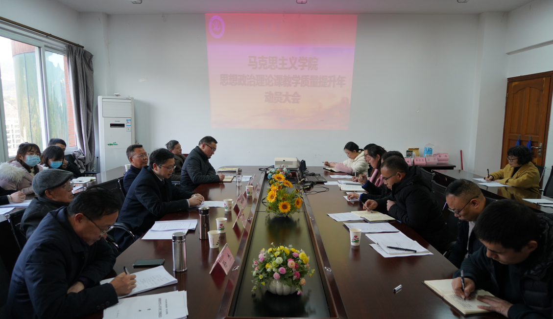 院长孙杰作动员报告,他指出,beat365正版唯一官网必一启动“思政课教学质量提升年”活动是切实落实学院党委和行政工作安排部署,推动全员育人、全程育人、全方位育人和“三二二”大思政格局向纵深发展,全面提升思政课教学质量,努力开创思政课教学工作新局面的必然要求。他从三个方面进行了动员:一是要充分认识提升思想政治理论课教学质量的重要意义,要从提升思想政治理论课教学质量是党和国家加强意识形态工作的必然要求、是高校担当历史使命,回答好“新时代教育三问”的必然选择、是实现学校高质量发展的必然要求等三个方面切实认真思想政治理论课的重要性。二是正确认识beat365官网思想政治教学工作的现状和存在的问题,“十三五”期间,我校思政课建设在队伍建设、教师专业成长、示范课程建设、教育教学改革、实践教学等方面取得了一定的成绩,同时我们也面临着师资队伍短缺、高层次人才缺乏、教师队伍结构不合理、教学质量有待提高、教学研究成果不多、优质课比赛获奖成果很少,课程建设进度缓慢等一系列具体问题。三是勠力同心,攻坚克难、凝心聚力、多措并举,为实现思政课教育教学高质量发展而努力奋斗,全院教师要按照beat365正版唯一官网必一“十四五”规划和2022年beat365正版唯一官网必一工作要点,重点做好推动内涵建设、推动科研平台和团队建设、推动大中小学思政课一体化建设、推动思政课实践教学特色、推动师资队伍建设等五项工作。他号召全体思政课教师要按照习近平总书记的要求做政治强、情怀深、思维新、视野广、自律严、人格正的优秀思政课教师,为开创思政课教学工作新局面而共同努力奋斗