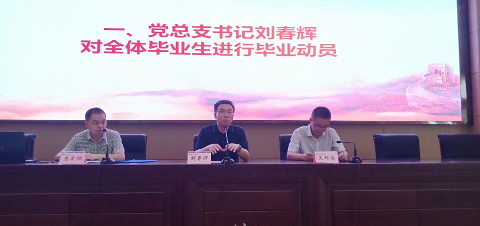 6月10日下午,beat365官网在学术报告厅A厅召开2019届毕业生教育与动员大会。党总支书记刘春辉、党总支副书记吴辉兵、学工办主任唐幸福出席,2019届毕业生参加会议。