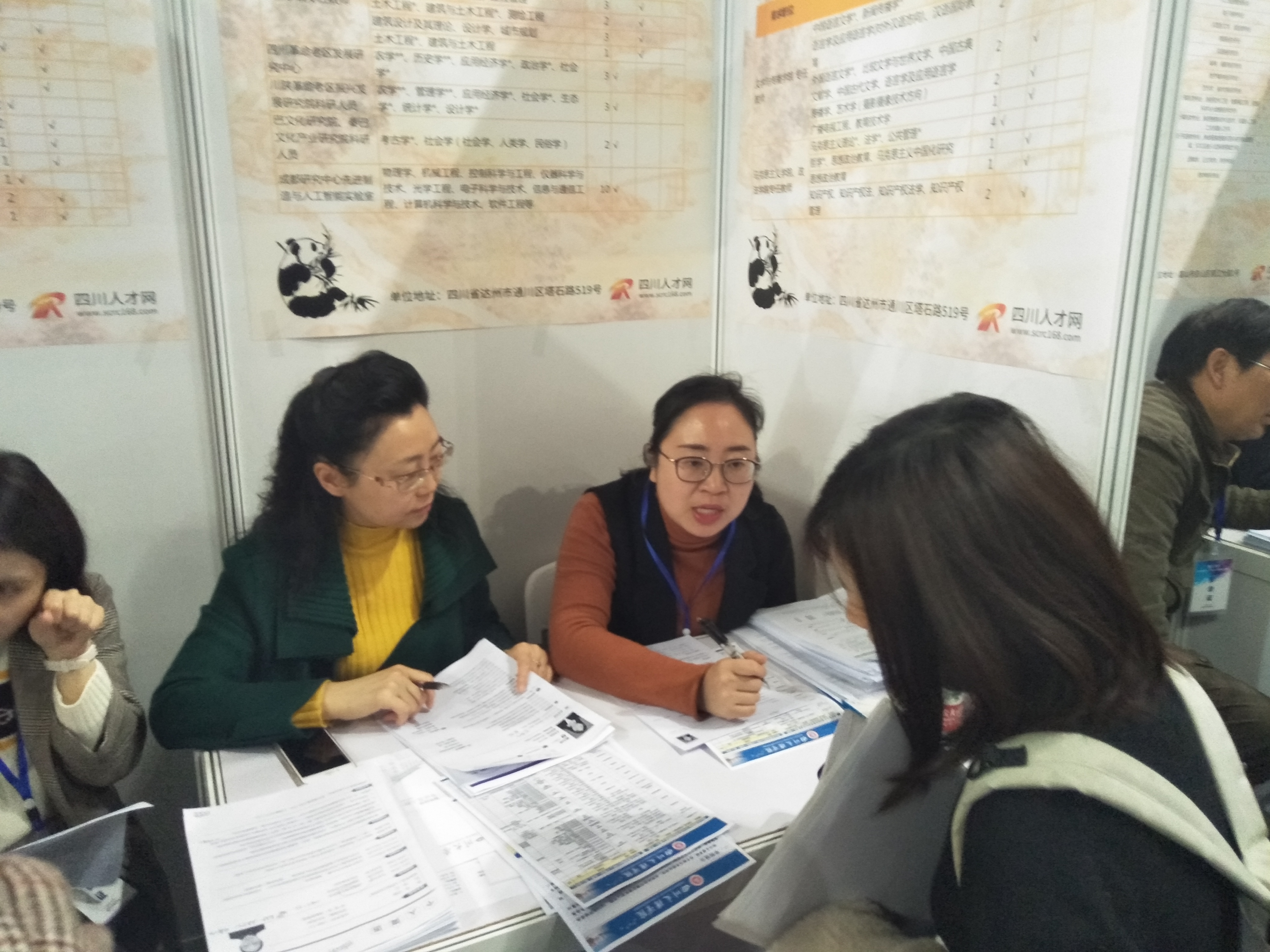 3月27日,“智慧天府”2019年四川省春季硕士、博士人才对接洽谈会在成都四川大学举办,为丰富壮大beat365官网的师资队伍,引进优秀的硕士、博士人才,学院选派“马原、思政”教研室主任曹红梅教授、“思修、法学”教研室主任王敏老师参加人才对接洽谈会。