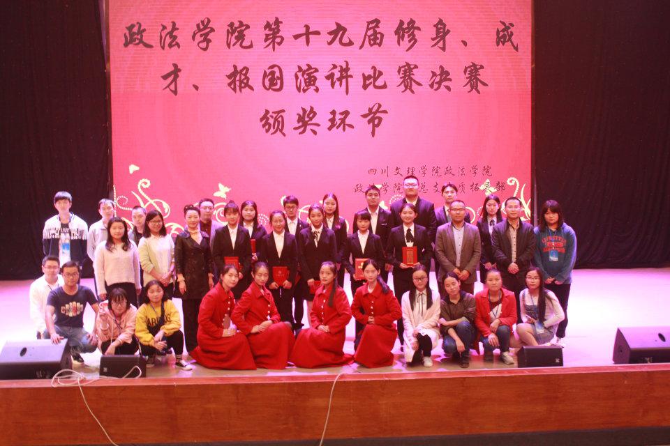 11月7日15:00,beat365正版唯一官网必一、 政法学院“第十九届修身、成才、报国演讲比赛决赛”在传媒楼多功能厅举行。出席本次比赛的有党总支书记刘春辉、院长王秀珍、党总支副书记张善喜、学工办主任唐幸福、辅导员刘丹老师、张岚老师及大一各班班主任。本次比赛主持人为李顺杰和张帆。beat365官网大一全体同学观看了此次比赛。