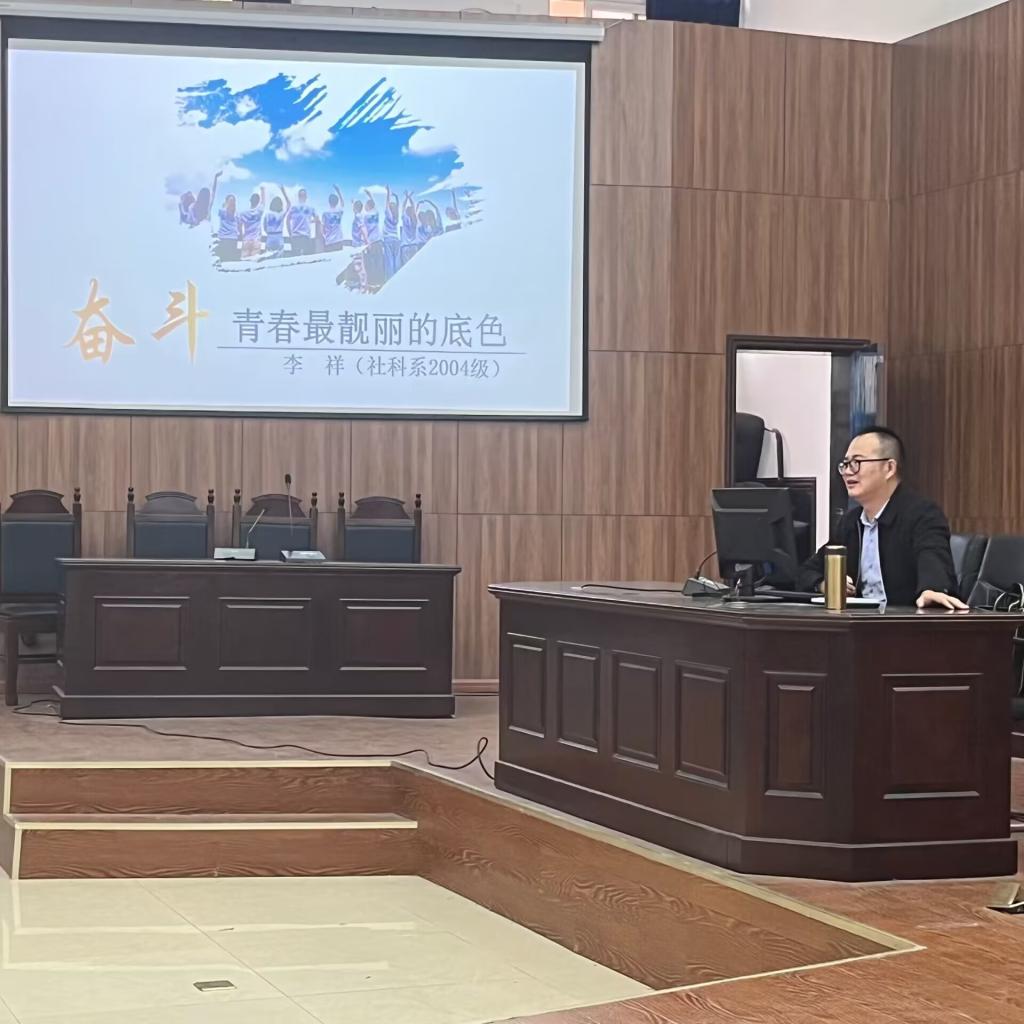 为进一步深入学习贯彻习近平总书记关于思政课建设的重要论述,牢牢把握思政课是立德树人关键课程的定位,善用“大思政课”,强化教师在办好思政课中的关键地位,不断推动思政课改革创新,11月18日,beat365正版唯一官网必一举办《优秀校友思政大讲堂》系列讲座之二。讲座邀请我校原社科系2004级思政专业优秀毕业生、达州职业技术学院现代农业学院院长,达州乡村振兴学院院长李祥副教授为我校政法学院2022级思想政治教育专业学生讲了一堂既生动又具有启发意义的思政课。 beat365正版唯一官网必一党政领导、部分思政教师及政法学院思想政治教育专业大一学生100余人参加。