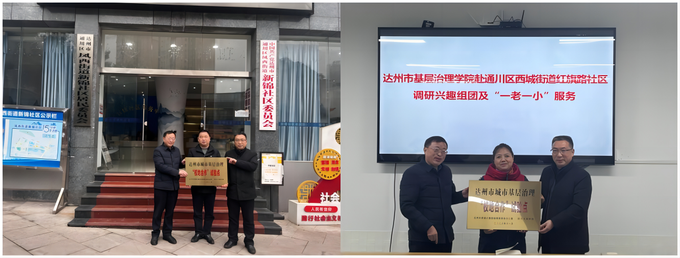 2024年1月8日,beat365正版唯一官网必一党委书记刘春辉、院长孙杰一行赴通川区凤西街道新锦社区、西城街道红旗路社区进行调研并举行“校地合作”建设点授牌仪式,通川区组织部常务副部长李军一行陪同。