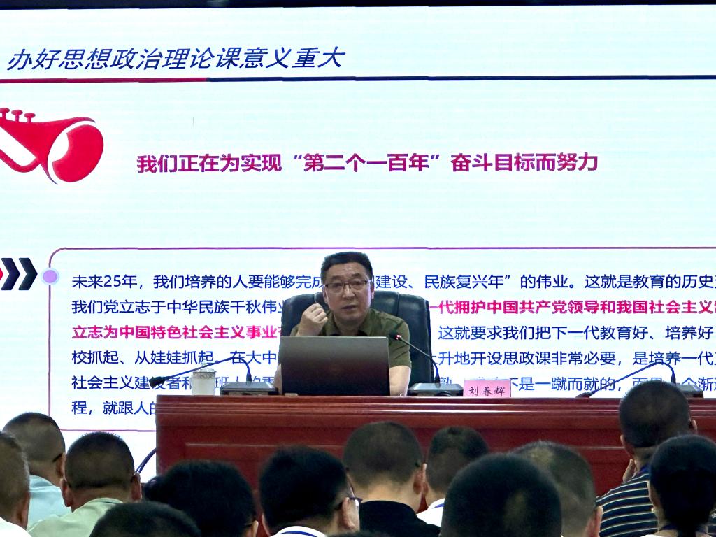 刘春辉书记以《培根铸魂 启智润心》为题,从习近平关于教育的重要论述、思政课是落实立德树人根本任务的关键课程两个方面深入详实地阐释了思政课教师应如何办好人民满意的教育,实现思政课培根铸魂、启智润心的美好愿景。发展教育要坚持党对教育工作的全面领导,以立德树人为根本任务,围绕培养什么人、怎样培养人、为谁培养人的根本问题,通过改革创新和教师队伍建设,做到浇花浇根,育人育心。要立足科教兴国战略,坚持教育优先发展、科技自立自强、人才引领驱动,大力弘扬教育家精神。思政课作用不可替代,思政课教师责任重大。办好新时代思政课,要立足党的革命建设和改革创新历史,按照习近平总书记关于思政课建设的重要指示精神,领悟思政课的内涵和意义,在解决思政课面临的问题中开辟思政课建设全新格局。新时代思政课的定位是铸魂育人,这给思政课教师提出了更高要求,要发挥思政课政治引导的基本功能,塑造学生的思想灵魂和价值取向,不断传播真理,培育思维,提高学生的实践能力。经师易求,人师难得。思政课教师要不断提升综合素养,做到政治强、情怀深、视野广、思维新、自律严、人格正。要通过有声有色、有血有肉、有情有义、有滋有味的课堂教学,实现思政课的八个相统一,努力打造有高度有深度有温度的思政“金课”。
