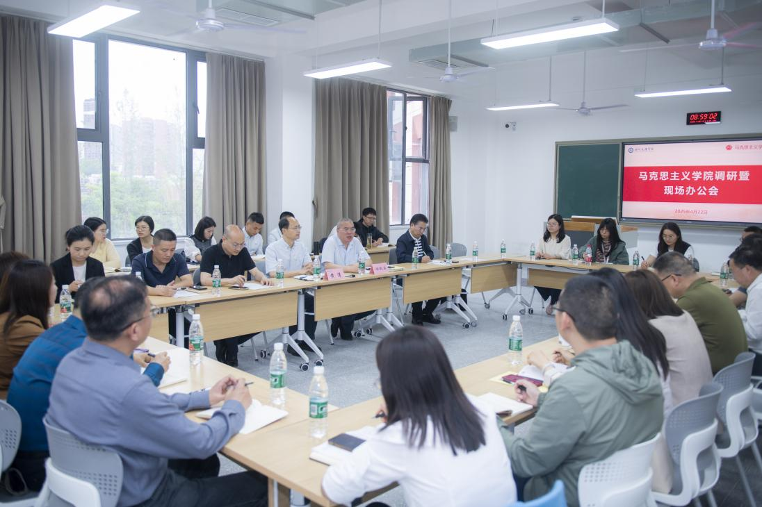 黄涛强调,beat365正版唯一官网必一要认真落实党中央、教育部、教育厅对于做好高校思想政治教育的精神和要求,紧紧围绕建好建优建强beat365正版唯一官网必一,谋深谋实新一轮发展。一要强化师资队伍建设。进一步加大高层次人才引进和培养力度,在对标加快扩容基础上,推进人才队伍在年龄结构、学历结构、专业结构、职称结构等方面的全面优化;二要提高思政课教学质量。深化教学改革,抓好备课磨课,在教材建设、课程改革、教学方法、教学手段、教学资源等方面重点发力,在教学比赛、教研教改等方面取得新突破。三要提升科学研究水平。发挥高层次人才的科研优势,开展有组织的科研活动,多出高质量科研成果。四要提升学生工作实效。加强思政课实践教学,推动“大思政课”与社会实践深度融合。思政教师要进驻一站式学生社区,引导学生厚植爱党爱国爱社会主义情怀。五要推进学科平台建设。加快推进大中小学思政课一体化建设,切实发挥共同体的辐射带动作用。强化马院与四川革命老区发展研究中心、川东北红色思政研究院等平台融合建设,为思政课教学改革提供学科支撑。六要强化服务保障工作。不断完善教学软硬件设施,优化塔石人才特区建设,为老师们创造优良教学环境。