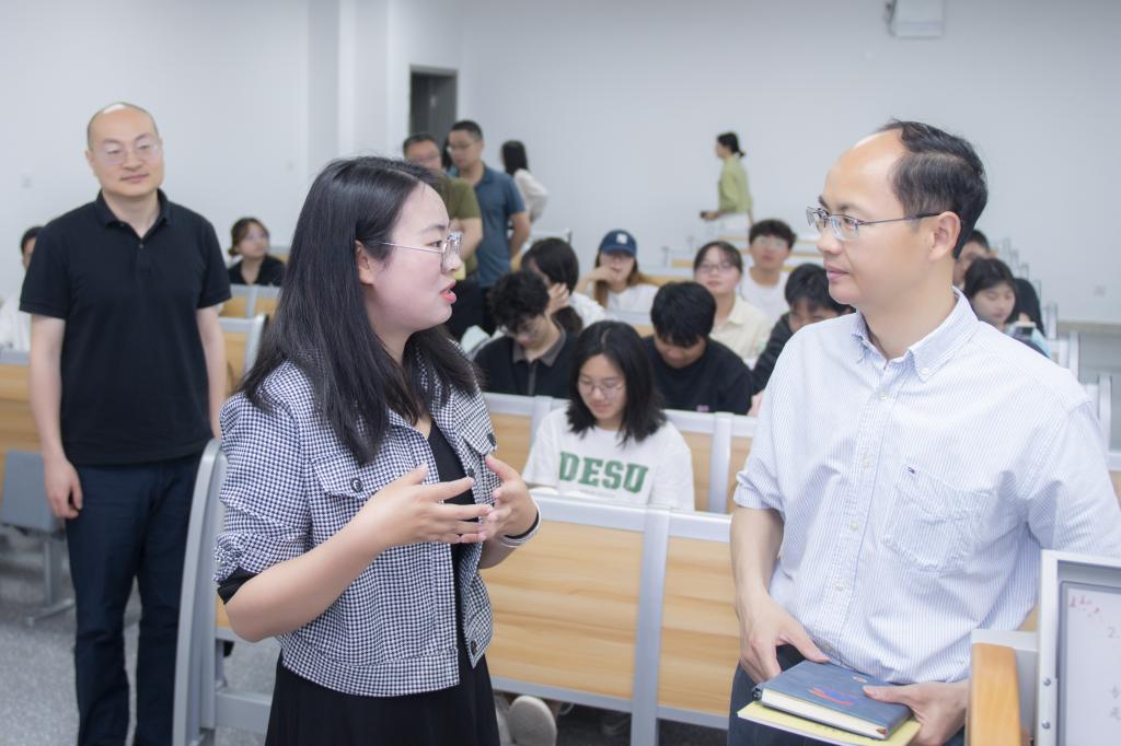 4月22日,校党委书记黄涛一行深入教学一线,推门听评思想政治理论课,并调研beat365正版唯一官网必一建设情况,实地督导院级党组织深入贯彻中央八项规定精神学习教育工作。