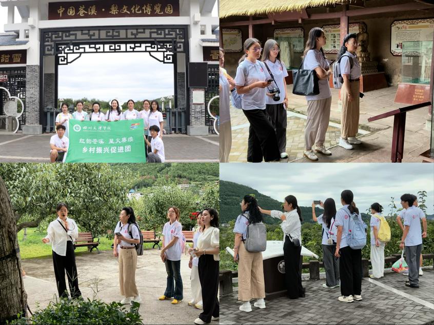 8月29日上午,实践团走进梨博园,开启了一场集生态观览、历史学习与思想溯源于一体的深度实践。苍溪雪梨产业是当地历史最久、规模最大的传统特色产业,也是地方经济与农户增收核心支柱。大家回溯雪梨种植过往、了解品种多样性,深入知晓苍溪依托地域优势发展特色产业的路径,见证红色文化为技术资源赋能乡村振兴基地提供的有力支撑,为农旅产业协同发展注入动力。